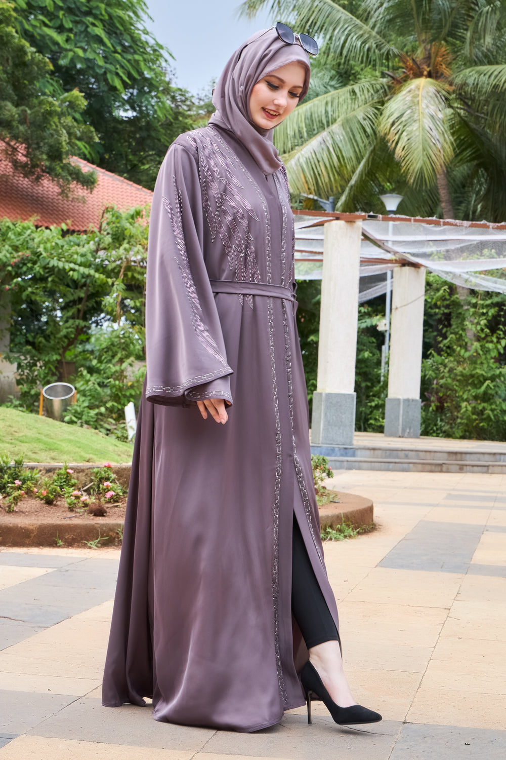 Elegant Mauve Embellished Abaya