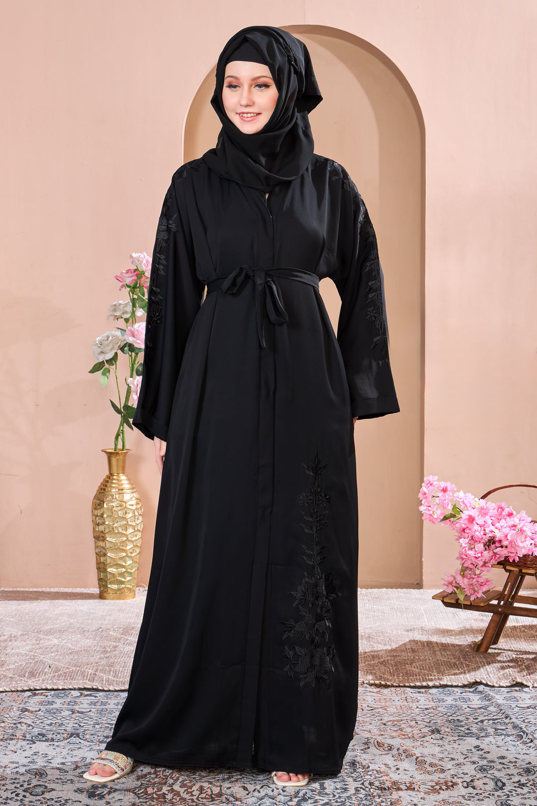 Black Abaya with Floral Embroidery