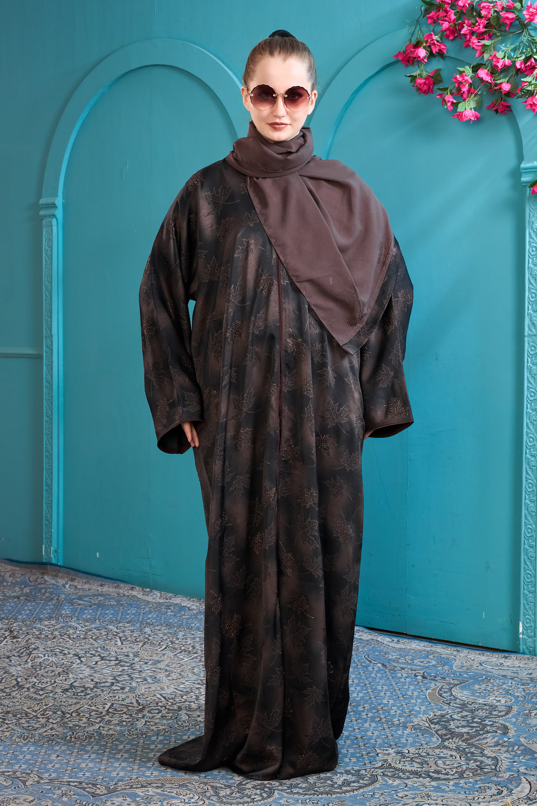 Sophisticated Brown Floral Abaya