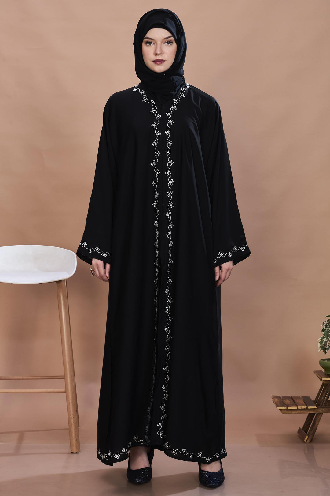 Black Swirl Embroidery Abaya