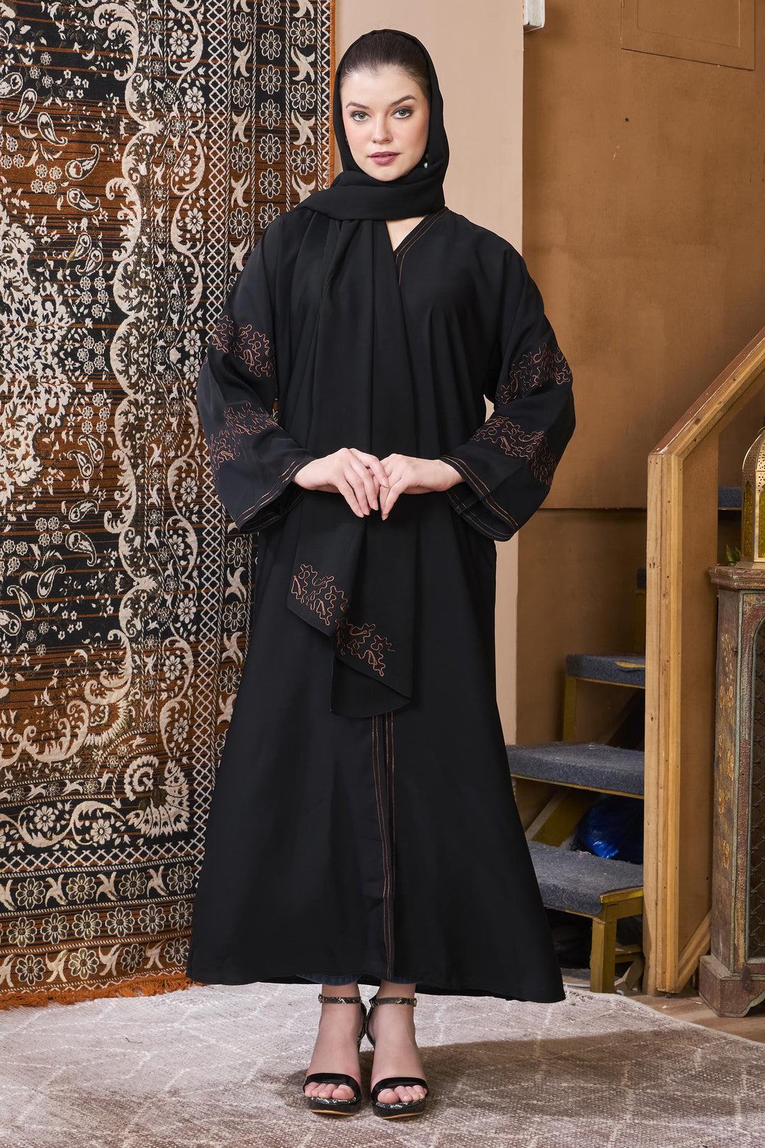 Black Copper Embroidered Abaya