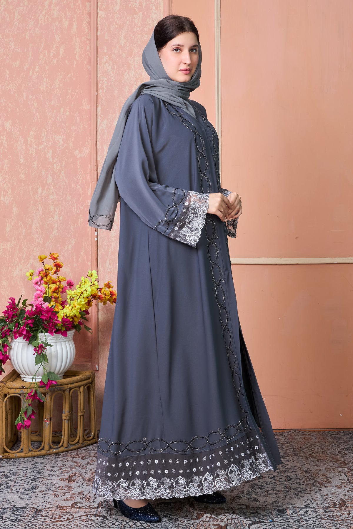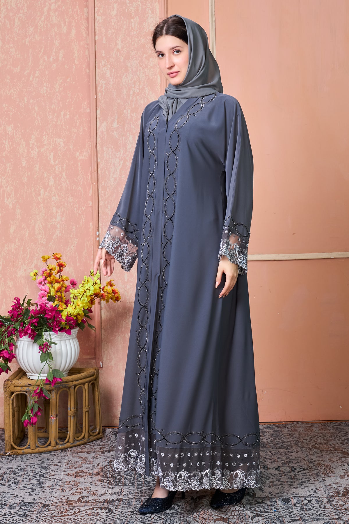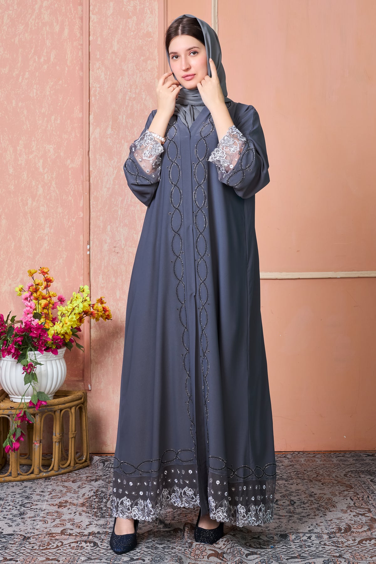 Smoky Grace Embroidered Abaya