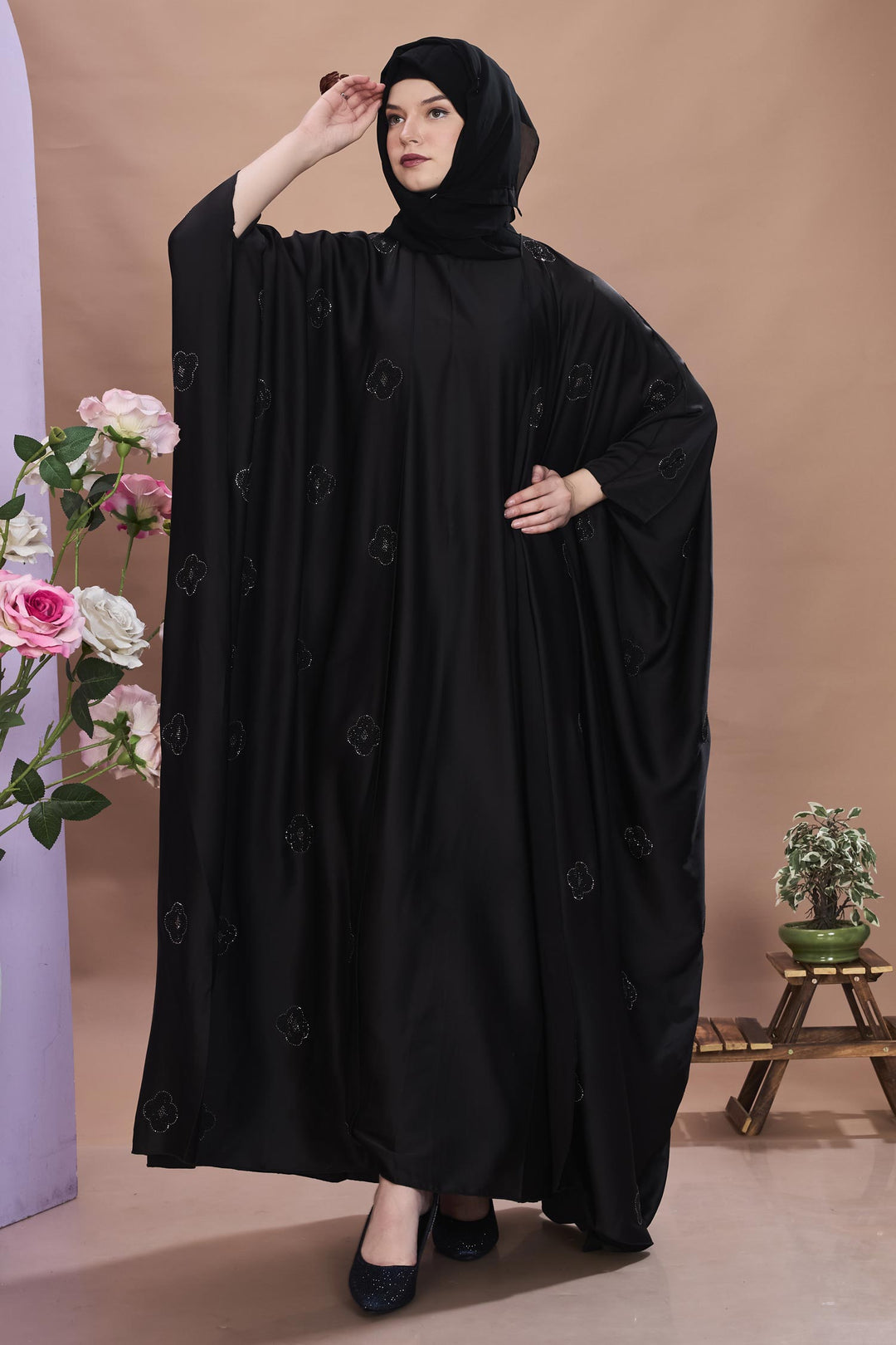 Enchanting Black Cape With Silver Diamonds Along With Hijab